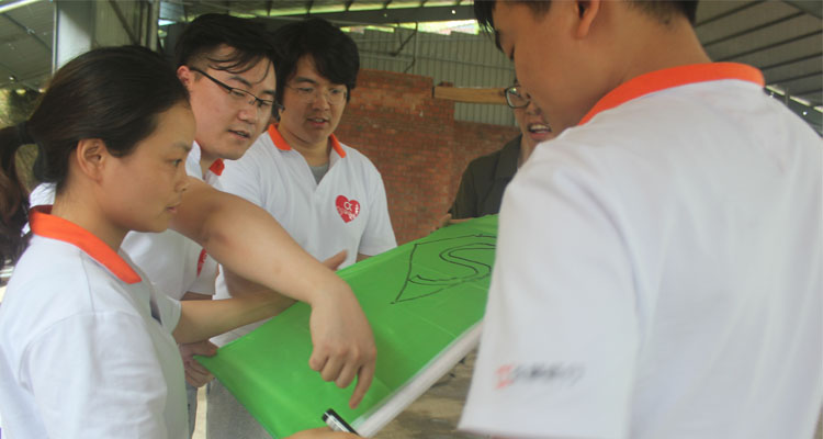 接着,按照教練的要求,全員随機分成(chéng)了四個小組。通過(guò)各小組的一番頭腦風暴,“大王隊”、“好(hǎo)漢隊”、“火焰連”、“速行人”一支支個性鮮明的團隊誕生,伴随着那嘹亮又充滿豪情壯志的口号及隊歌,團隊之間的較量真正展開(kāi)。